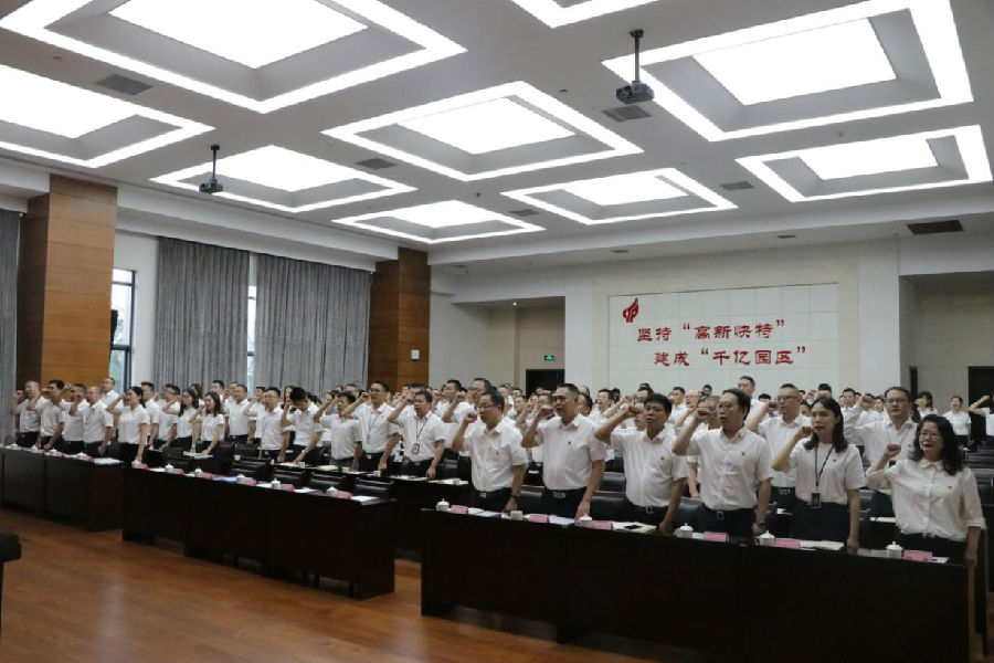 在大會的開始全體黨員起立歌唱《義勇軍進行曲》,新黨員進行入黨宣誓,老黨員重溫入黨誓詞,全體黨員都在堅定的誓詞中,表達著作為一名共產黨員的決心。