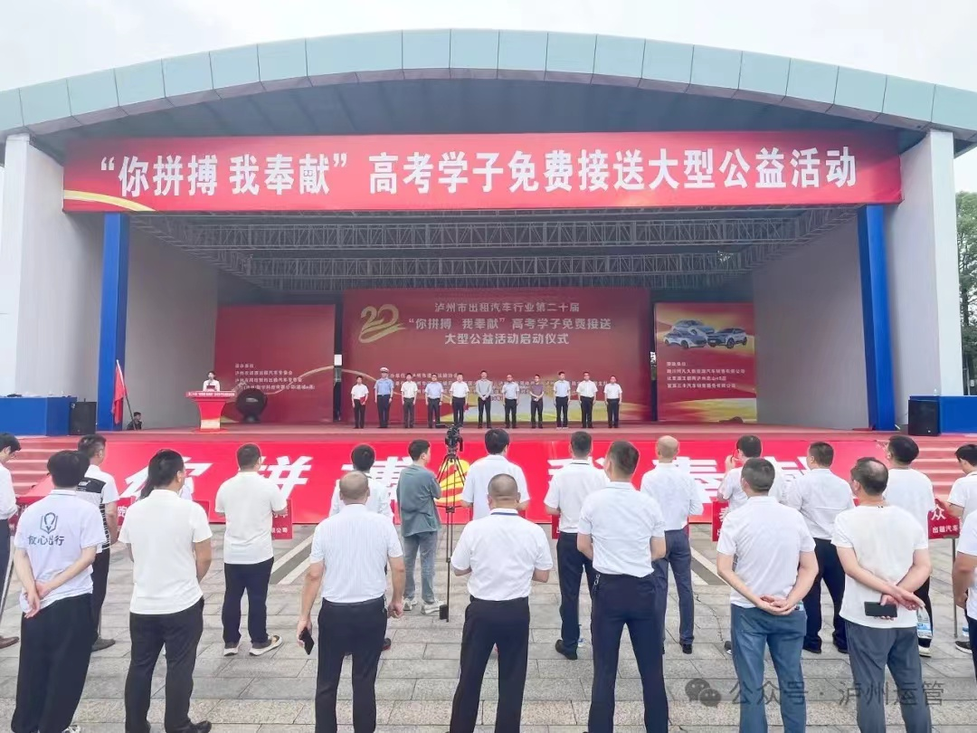 6月5日由瀘州市道路運輸協會承辦的第二十屆“你拼搏、我奉獻”高考學子免費接送公益活動在西南商貿城五區(qū)舉行啟動儀式,省交通廳、市上有關領導和瀘州市16家巡游出租汽車公司及網約車公司650輛參加此次送考活動的啟動儀式,隨著市領導宣布活動正式開始,參加活